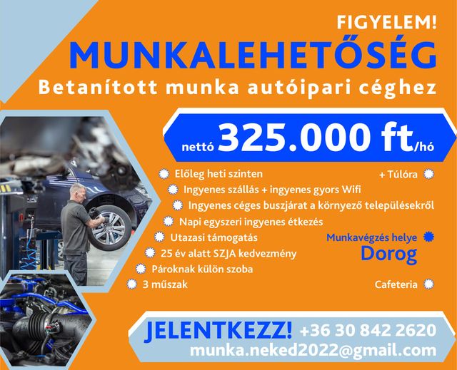 Betenított munka autóipari céghez2023. November 11., Saturday Kategóriák: Állásajánlat,Állás Magyarország